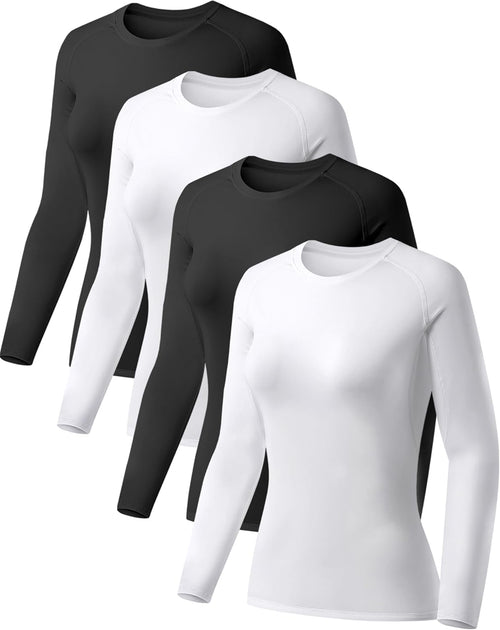 4 Pack Women's Compression Shirt Long Sleeve Performance Workout Baselayer Athletic Top Sports Gear